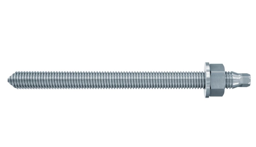 The fischer rod anchor RG M is made of zinc-plated steel with a grade of 5.8. The anchor rod is a systems accessory for various fischer mortar cartridges or injection mortars. Application with pre-portioned mortar cartridges is especially cost-effective for individual fixings. During mounting with the resin capsule, set the fischer anchor rod RG M through rotating and hitting motions with a hammer drill. The capsule is destroyed during the setting process, which mixes and activates the mortar compound. During mounting with injection mortars, the anchor rod is pushed into the drill hole manually by lightly rotating it. The system is particularly suitable for cost-effective fixing of machines, steelwork constructions, and supporting feet in internal areas.